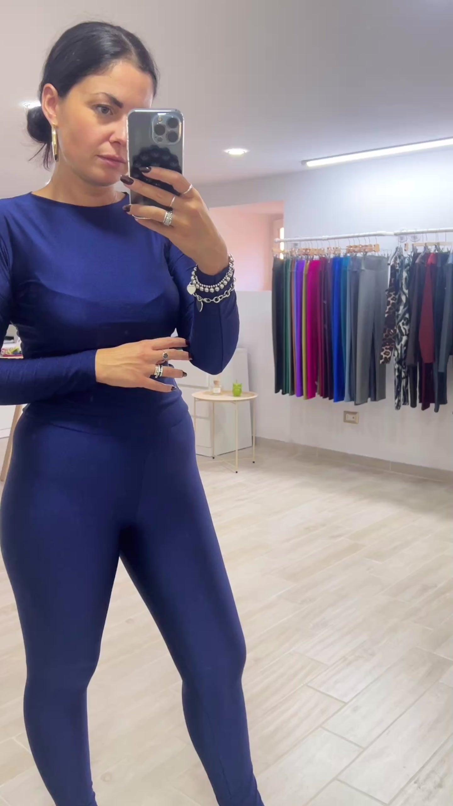 The leggings are produced in Carvico Sumatra lycra (exterior with sparkling effect) , super classic fabric of the collection, it is a brilliant charmeuse that follows the shape of the body without forcing. Perfect for garments with a balanced mix between the search for a glamorous and refined style and the comfort ensured by the perfect fit. Its appearance makes Sumatra attractive to the eye and irresistible to the touch. Elegant and delicate , tough and resistant, it is extremely compact and non-transparent . Sumatra perfectly follows the lines of the body adapting to the shapes without constraining, usable in free time and for physical activity.