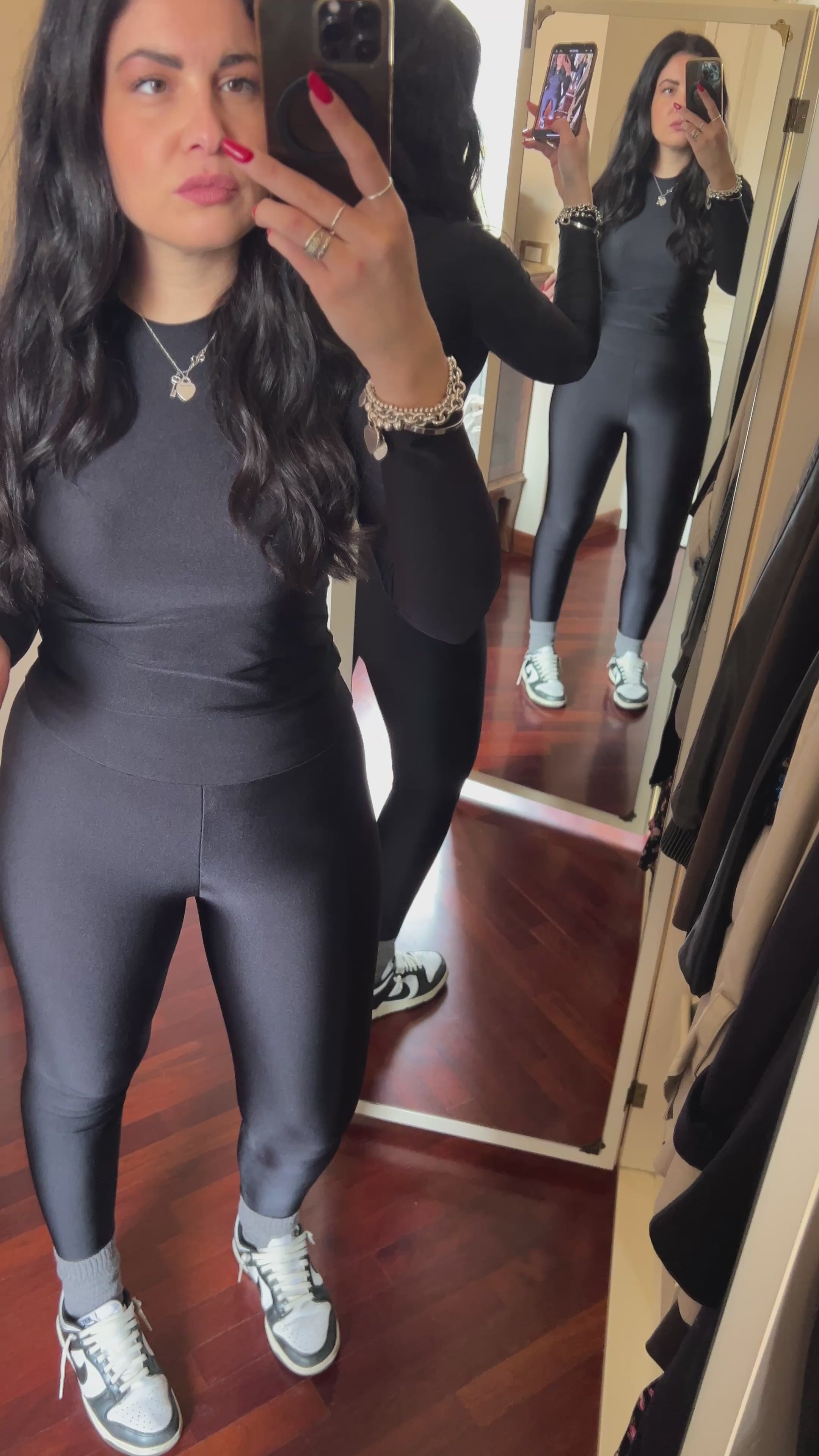 The leggings are produced in Carvico Sumatra lycra (exterior with sparkling effect) , super classic fabric of the collection, it is a brilliant charmeuse that follows the shape of the body without forcing. Perfect for garments with a balanced mix between the search for a glamorous and refined style and the comfort ensured by the perfect fit. Its appearance makes Sumatra attractive to the eye and irresistible to the touch. Elegant and delicate , tough and resistant, it is extremely compact and non-transparent . Sumatra perfectly follows the lines of the body adapting to the shapes without constraining, usable in free time and for physical activity.