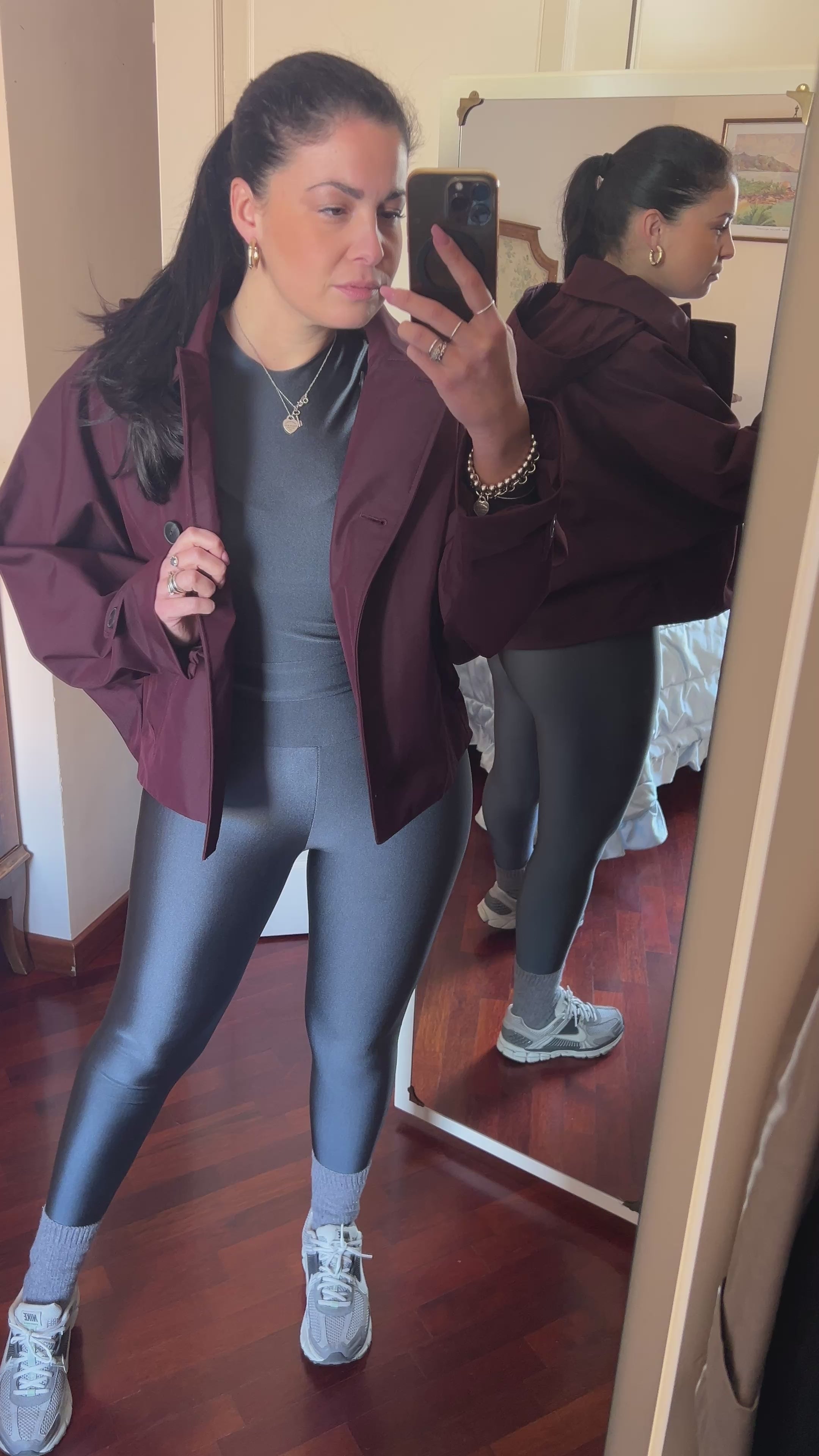 Doppio tessuto performante: esterno in lycra Sumatra lucida, interno in Vita Suede rigenerato ECONYL®. Fascione alto in vita con elastico modellante. Leggings traspirante, ultra coprente e confortevole. Ideale per training o look urban.